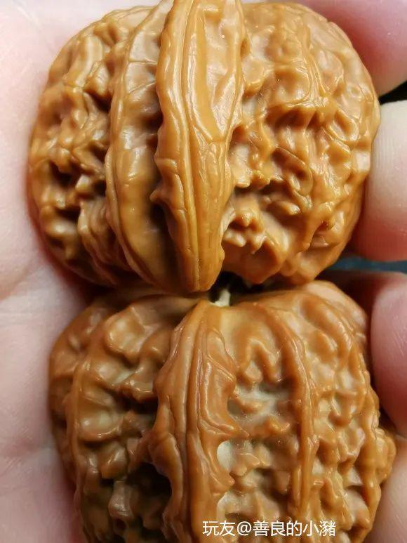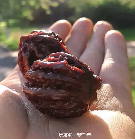 还有玩友@一梦千年 这对秋子核桃,在阳光下都能看到玉化的感觉了,这皮质不错吧?包浆不错吧?只花了2块钱!四舍五入,就是白给,不要钱!