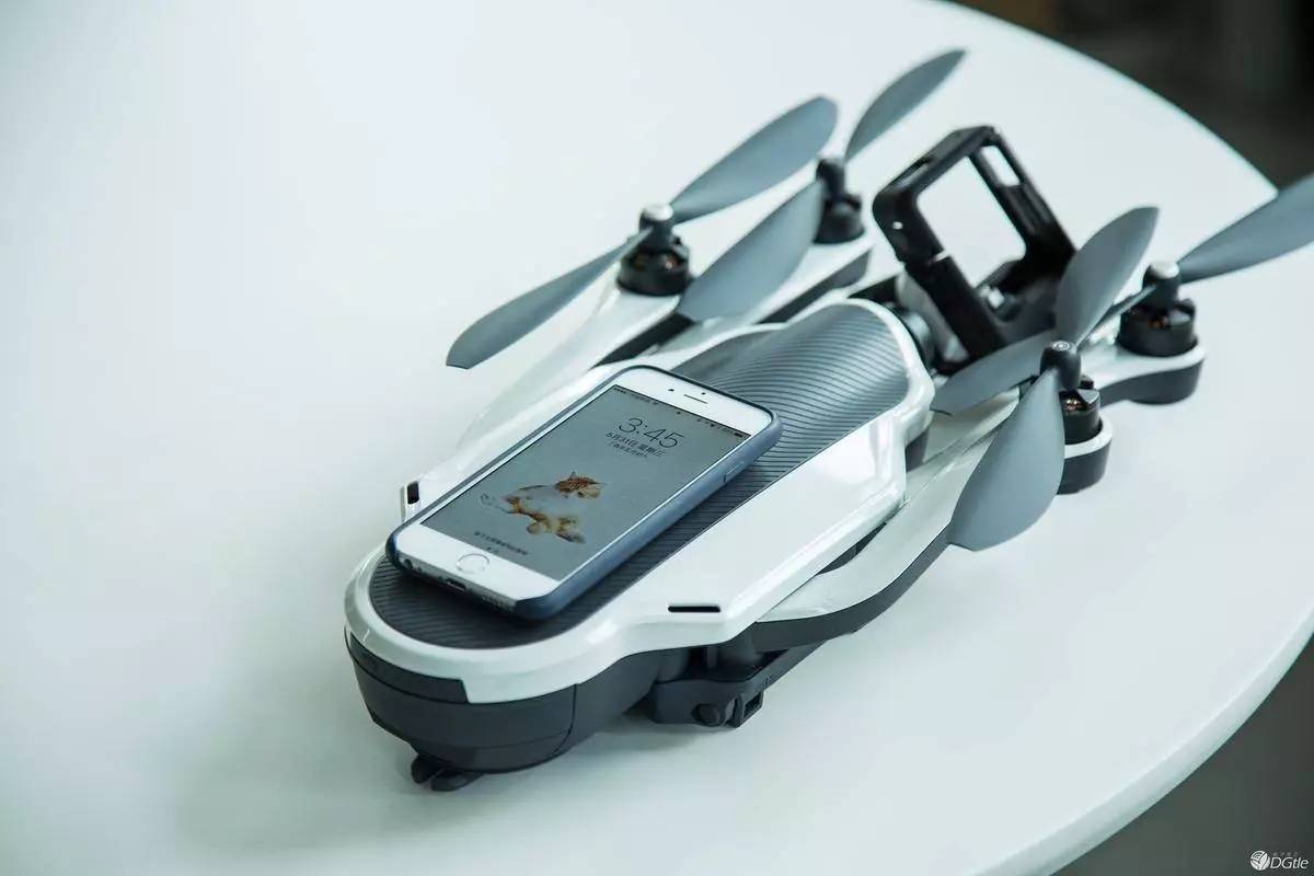 使用前需利用束带将另外购置的 Hero 运动相机装载在 Karma 前方可拆卸的相机稳定器上(起云台作用),装上螺旋桨、电池等即可飞行了。